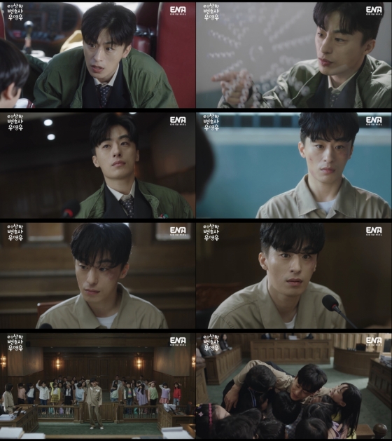 구교환은 지난 27일 방송된 ENA채널 수목드라마 '이상한 변호사 우영우'(극본 문지원, 연출 유인식)에서 '어린이 해방군 총사령관 방구뽕'으로 등장해 시청자들에게 묵직한 메시지를 전했다.