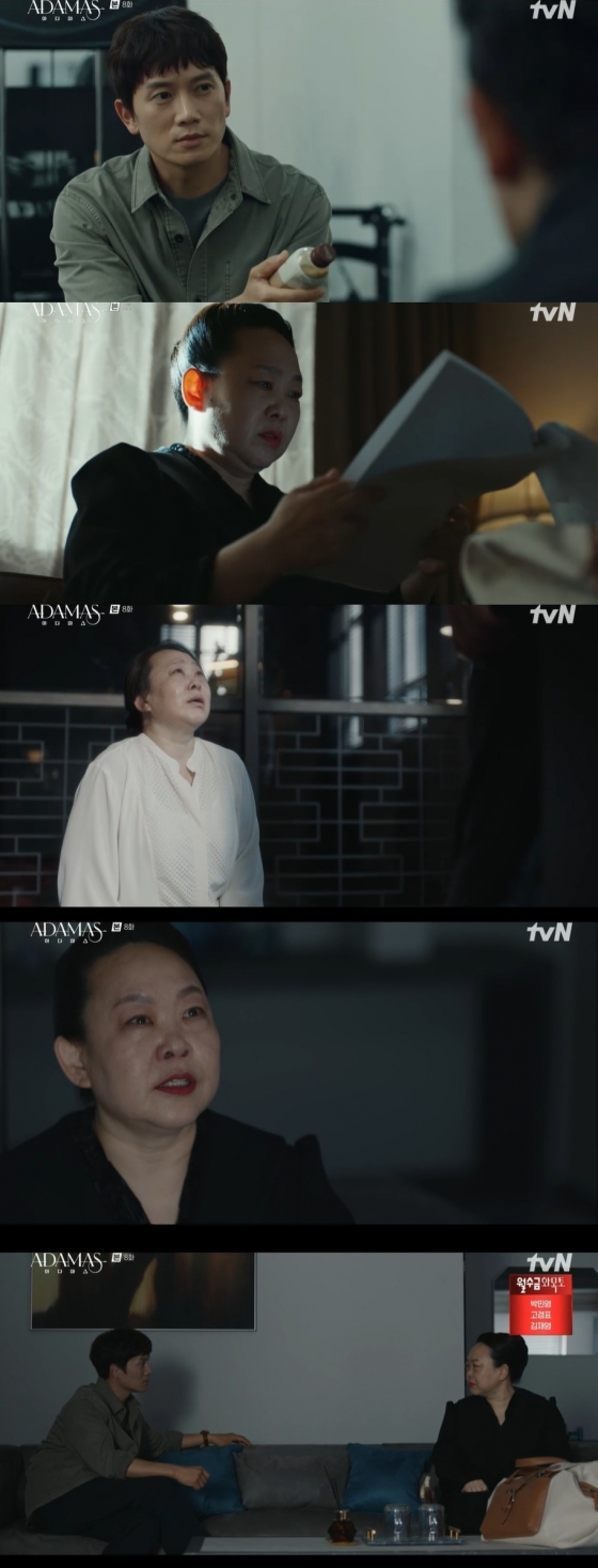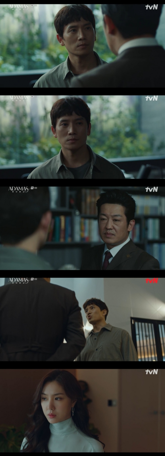 '아다마스' 배우 지성이 황정민을 편 만들기에 실패하며 해송원 내 동맹에도 금이 가기 시작했다.