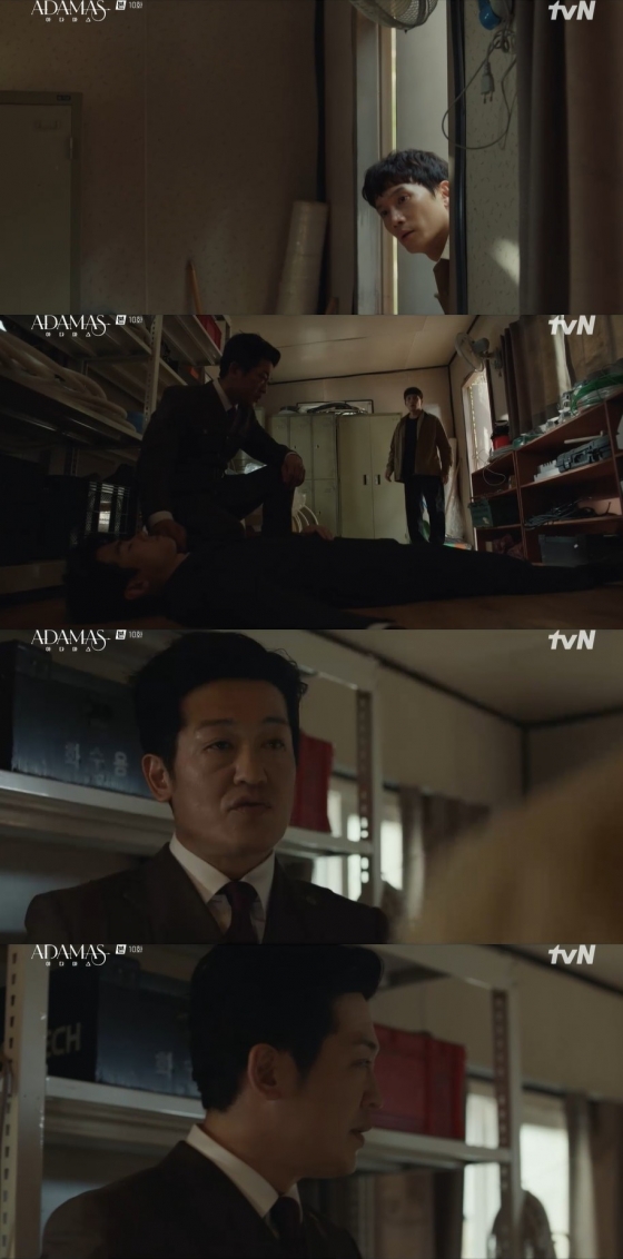 '아다마스'에서 지성과 허성태가 고윤에 의해 정체가 발각될 위기에 놓였다.
