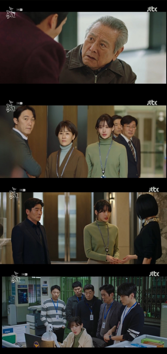 지난 27일 방송된 JTBC 드라마 '모범형사2'에서는 TJ그룹 법무팀 팀장 최용근(박원상 분)은 천나나(김효진 분)의 심부름을 하며 회사 기밀 정보에 대해 알고 있는 문보경(홍서영 분)에게 "내부 유출자에겐 회사에서 해고와 동시에 소송이 들어갈 것"이라고 경고했다. 이에 문보경은 깍듯이 대답하며 해당 사건과 한 발 떨어져 있는 모습을 보였다.