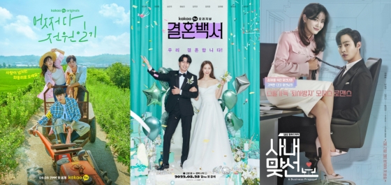올해 초 K로맨스앓이의 포문을 열었던 '사내맞선'(연출 박선호, 극본 한설희 홍보희)은 신데렐라 스토리 같지만 빠르고 유쾌한 전개, 만화 같은 연출에 강태무와 신하리 역을 200% 소화하며 '차세대 멜로킹&'퀸' 자리에 안착한 안효섭과 김세정의 케미가 빛을 발하며 첫 방송 이후 3월부터 13주간 넷플릭스 글로벌 TOP10을 기록했을 정도. 이어 산하의 글라인 선영 작가가 집필한 '기상청 사람들 : 사내연애 잔혹사'(연출 차영훈, 극본 선영, 크리에이터 글Line&강은경)는 감정의 롤러코스터를 타는 네 사람의 사내 연애와 현실적인 세대별 이야기, 변화무쌍한 기상과 주인공들의 감정을 연결시킨 대사가 극의 재미를 더했다는 호평으로 많은 이들의 가슴 따뜻한 위로와 힐링을 전하며 깊은 위로와 공감을 얻었다. 최근 공개된 카카오TV 오리지널 '결혼백서' (연출 송제영 서주완, 극본 최이랑) 역시 곧 결혼을 앞둔 예비부부의 이야기를 통해 현재 대한민국의 결혼준비 모습을 현실적으로 담아내며, 이진욱과 이연희의 찰떡 케미로 시청자들의 높은 사랑을 받았다.