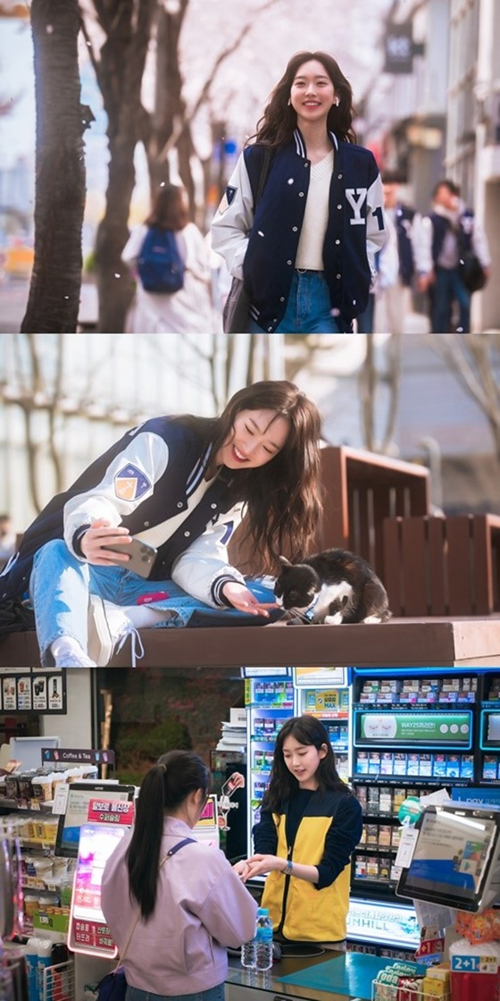 공개된 스틸 속 한지현은 빛나는 캠퍼스 에너자이저로 시선을 끈다. 대학생의 상징이라 불리는 과잠을 입고 흩날리는 벚꽃길을 걷는 한지현은 신입생의 생기 넘치는 모습을 표현했다. 특히 캠퍼스 이곳저곳을 누비는 모습에서 활기찬 에너지가 드러나는가 하면, 늦은 밤 고된 아르바이트에도 미소를 잃지 않는 모습에서는 단단한 내면이 엿보인다.