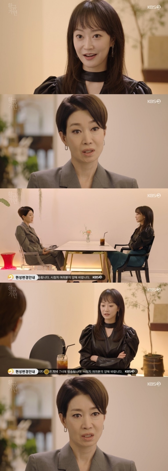 8일 오후 방송된 KBS 2TV 일일드라마 '황금 가면'에서는 위기에 몰린 서유라(연민지 분)가 SA 그룹 차화영(나영희 분) 회장과 만나는 장면이 담겼다.