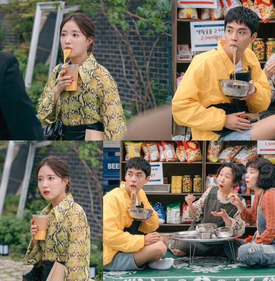 제작진은 12일 오후 9시 50분 방송에 앞서 이세영 김도훈 장혜진 백현주의 '충격 대폭발 리액션'을 공개했다. 극 중 평화롭던 세입자들과 '로(Law)카페' 알바생 배준(김도훈)이 무언가 보고 충격에 빠져 동작을 그대로 멈춘 상황. 화려함의 끝판왕인 뱀피 패턴 블라우스를 입고 걸음을 재촉하던 김유리는 마시던 오렌지 주스를 입에서 주르르 쏟아내고, 배준은 입에서 면발이 뚝 떨어지며 코믹함을 일으킨다.