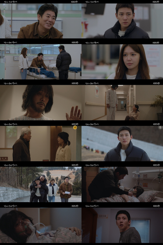 그 순간, 윤겨레의 손을 잡으며 눈을 뜬 윤기춘은 "살려줘. 내가 잘못했어"라고 소리치며 울먹였다. 갑작스런 윤기춘의 돌발행동에 당황한 윤겨레는 도망치듯 병실에서 나와 스릴을 선사했다.