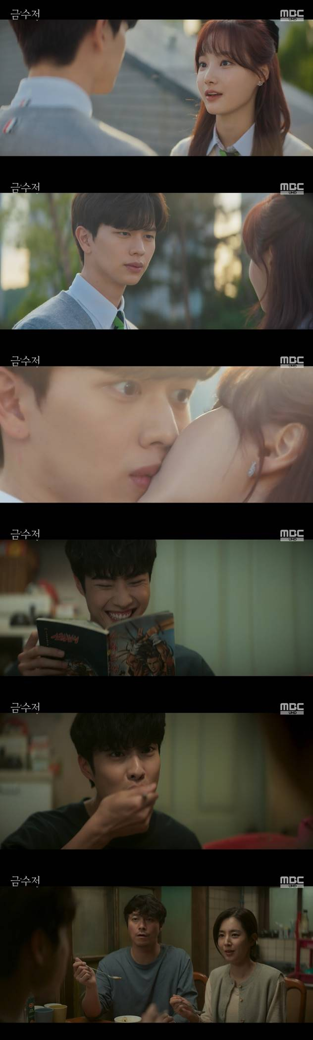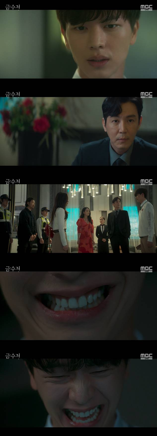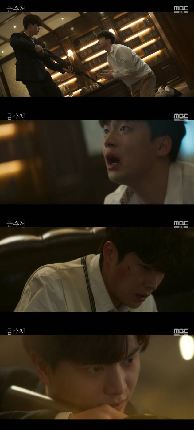 24일 방송된 MBC 금토드라마 '금수저'에서는 이승천(육성재 분)이 금수저를 쓰레기 더미에서 되찾고 황현도(최원영 분)에게 세 번째 식사를 요구했다. 앞서 승천은 묘령의 할머니(송옥숙 분)에게 "동갑인 아이의 집에 가서 금수저로 밥을 세 번만 먹으면 그 아이의 부모가 네 부모가 된다"는 말을 듣고 금수저를 샀다. 승천은 부자가 되기로 마음먹은 것.