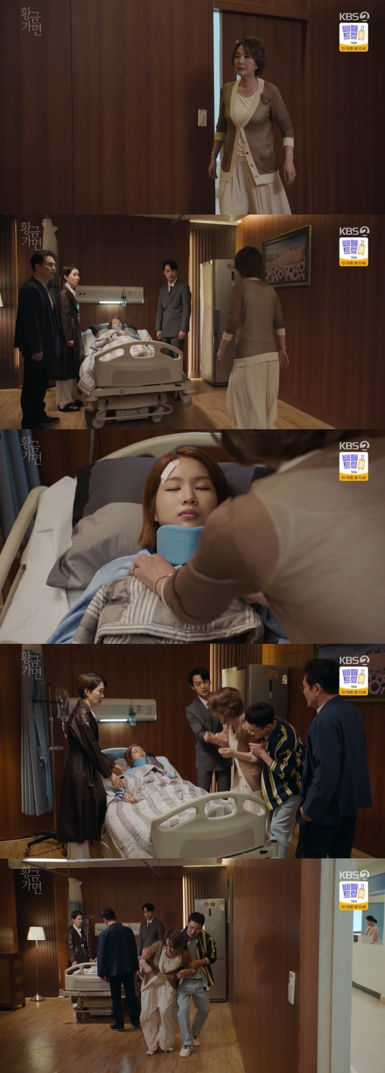 4일 오후 방송된 KBS 2TV 일일드라마 '황금가면'에서는 강동하(이현진 분)와 홍진아(공다임 분)가 교통사고로 인해 의식 없이 병원에 누워있는 장면이 담겼다.