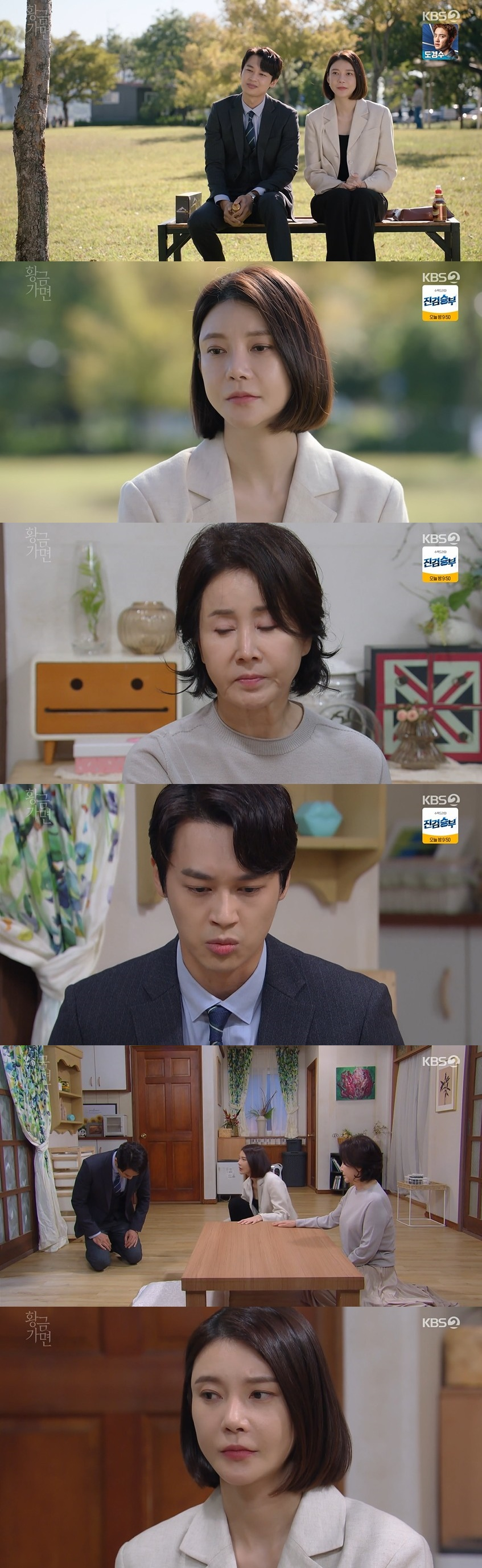 '황금가면'에서 이중문이 차예련과 선우은숙 앞에서 무릎 꿇고 사죄했다.