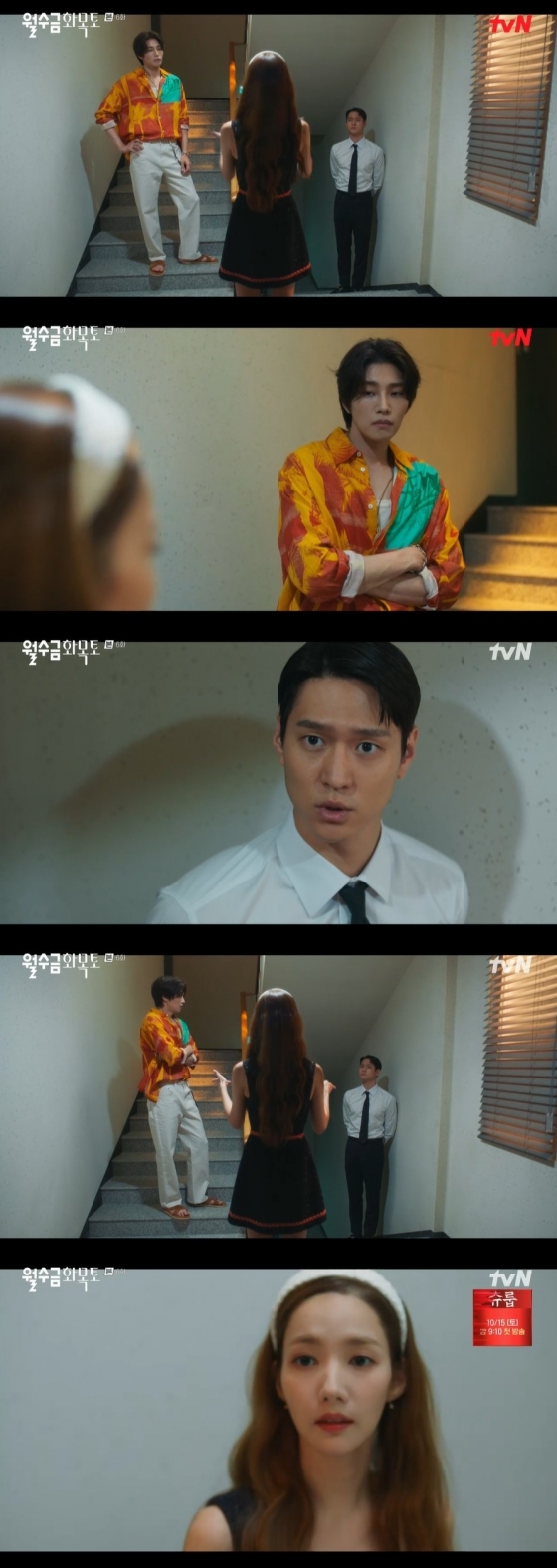 6일 오후 방송된 tvN 수목드라마 '월수금화목토'에서는 계약 결혼 마스터 최상은(박민영 분)의 기존 고객 정지호(고경표 분)와 신규 고객 강해진(김재영 분)이 최상은의 근무 요일을 두고 다투는 모습이 담겼다.