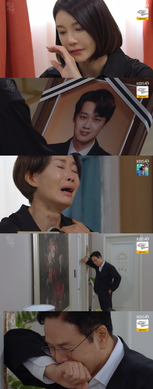 7일 방송된 KBS 2TV 일일드라마 '황금가면'에서는 홍진우(이중문 분)의 죽음에 통곡하는 차화영(나영희 분)의 모습이 전파를 탔다.