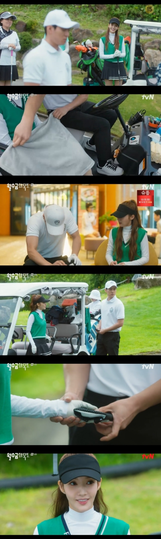 13일 오후 방송된 tvN 수목드라마 '월수금화목토'에서는 최상은(박민영 분)이 월수금 계약 결혼 고객인 정지호(고경표 분)와 부부동반 골프 모임을 간 모습이 그려졌다.