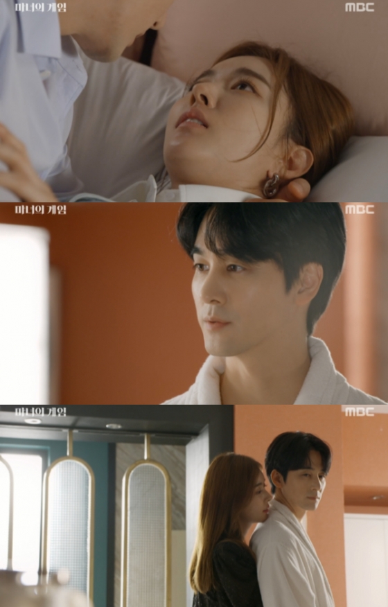 14일 오후 방송된 MBC 일일드라마 '마녀의 게임'에서는 주세영(한지완 분)이 정혜수(김규선 분)와 사실혼 관계인 강지호(오창석 분)와 밀회를 나누는 장면이 담겼다.