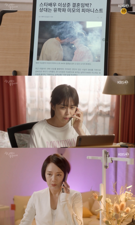 15일 방송된 KBS 2TV 주말드라마 '삼남매가 용감하게' 7화에서는 장세란(장미희 분)이 아들 이상준(임주환 분) 열애설 기사를 보고 김태주(이하나 분)에게 전화하는 장면이 그려졌다.
