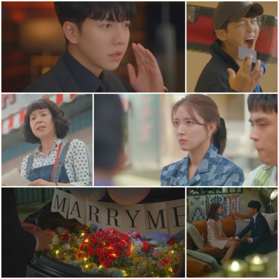 여기에 두 사람의 관계가 '흐림 뒤 맑음'이 될지, '앞으로도 계속 맑음'이 될지 기대감을 이끄는 장면이 포착돼 '잇몸 마름 주의보'를 발발시키고 있다. 매번 입던 추리닝에서 벗어나 멋진 슈트로 멋을 낸 김정호와 깔끔한 데이트룩을 뽐낸 김유리가 만나자마자 미소를 교환하며 로맨틱한 분위기를 형성하는 상황. 게다가 차 트렁크에 가득한 장미꽃과 'MARRY ME'가 적힌 갈런드는 심상치 않은 두 사람의 행보를 예고해 시선을 강탈한다. 나지막이 들려오는 "백번 천번 물어도 내 대답은 같아"라는 김정호의 멘트와 놀란듯한 김유리의 얼굴이 청혼을 의미하는 것인지, 초스피드 진도를 자랑한 두 사람의 다음 단계가 기대된다.