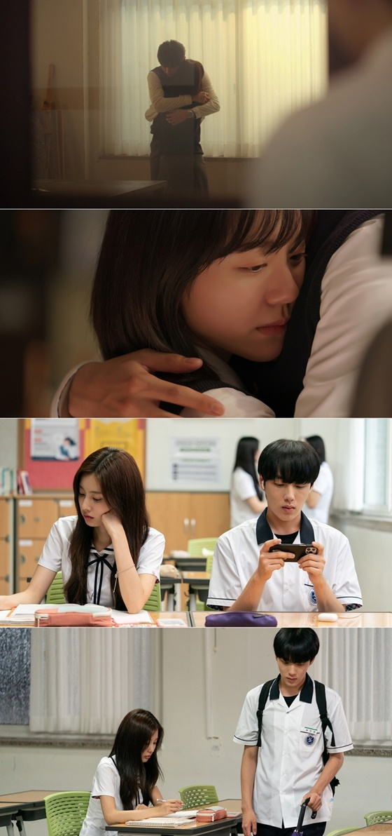 한편 현재의 10대 보미(강혜원 분)와 진영(윤현수 분)의 냉랭한 분위기도 포착됐다. 짝꿍인 두 사람은 옆자리에 앉아있지만 서로 쳐다보지도 않고 보미는 공부에, 진영은 휴대폰 게임에 몰두하고 있다. 또 모든 수업이 끝난 후에도 교실에 남아 공부에 열중하는 보미를 뒤로 한 채 먼저 자리에서 일어나 나가는 진영의 모습도 그려졌다.
