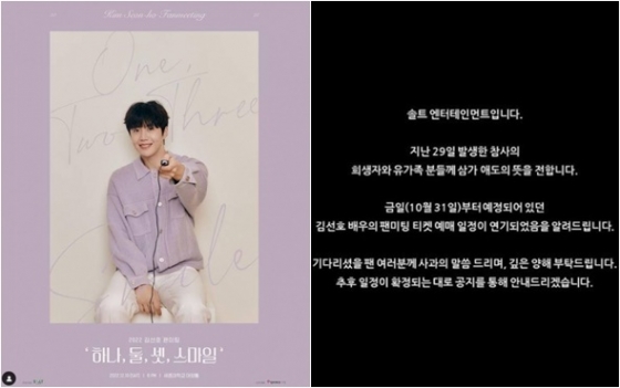 배우 김선호 측이 이태원 참사를 추모하며 팬미팅 티켓 예매 일정을 연기했다.