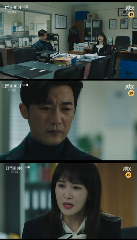 5일 방송된 JTBC 토일드라마 '디 엠파이어: 법의 제국'(극본 오가규, 연출 유현기) 12회에서는나근우(안재욱 분)가 함혜률(김선아 분)의 사무실에 찾아 자신이 윤구령(김균하 분)의 변호인을 맡게 되었다는 사실을 털어놓는 장면이 그려졌다.