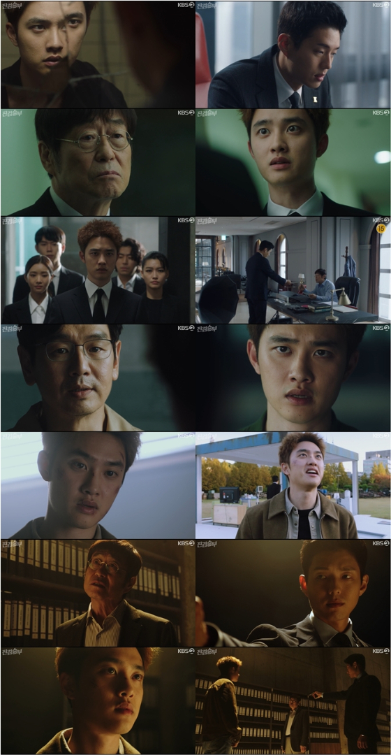 이날 '진검승부'에서는 진정(도경수 분)이 극악무도한 서현규(김창완 분)가 가진 모든 권력의 핵심이자 무기가 쌓여있는 서고에서 오도환(하준 분)과 의기투합해 숨통을 조이는, 대반전을 펼쳤다. 진정은 박재경(김상호 분)의 영정사진을 위해 박재경의 집을 찾았다가 추억을 되새겼던 상태. 쓰레기통에서 빈 MP3 상자를 본 진정은 박재경이 MP3를 바꿔치기했음을 깨달았고, 자신에게 피를 나눠주면서까지 목숨을 살려준 은인의 죽음에 자책하며 화장실 유리를 주먹으로 깨버렸다.