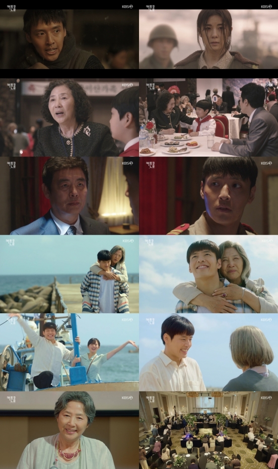 1950년 눈발이 흩날리던 12월. 젊은 자금순(하지원 분)과 남편 리종문(강하늘 분)은 6·25전쟁을 피해 흥남부두 인근에 정박된 메러디스 빅토리호에 몸을 싣기 위해 사투를 벌였다. 남편 종문과 아들 영훈은 어린 아이를 돕다가 배에 오르지 못했고 먼저 승선한 금순과 생이별을 하게 됐다. 분단의 아픔과 이별이 몰고 온 가족의 진정한 의미라는 '커튼콜' 주제를 관통하는 이 장면은 제작진이 10개월간 공들인 첫 컷으로 백미로 꼽힌다. 압도적인 스케일과 더불어 1인 2역으로 분한 배우 강하늘과 하지원의 열연도 눈을 뗄 수 없는 시청 킬링 포인트.