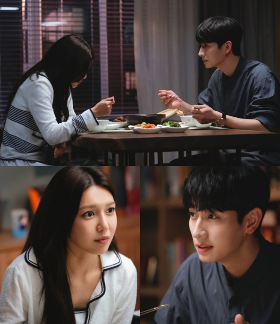 공개된 스틸에는 함께 저녁 식사를 하고 있는 강희와 정석의 오붓한 시간이 담겨 있어 시선을 사로잡는다. 식사를 하는 와중에도 서로를 향해 시선을 떼지 못하고 있는 두 사람의 눈빛에서는 첫사랑과 재회한 이들의 은은한 설렘이 감지되고 있다.
