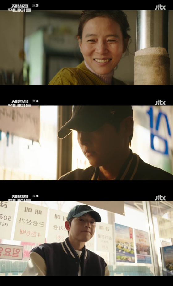 26일 방송된 '재벌집'에서는 과거로 회귀한 윤현우(송중기 분)가 어머니(서정연 분) 식당에 찾아간 모습이 그려졌다.