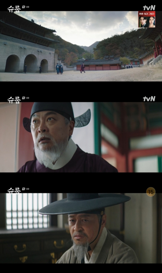 27일 방송된 tvN 드라마 '슈룹'에서는 임화령(김혜수 분)이 세자(배인혁 분)를 죽인 독과 진범을 알아낸 가운데 황귀인(옥자연 분)과 의성군(강찬희 분)이 역모를 준비한다.