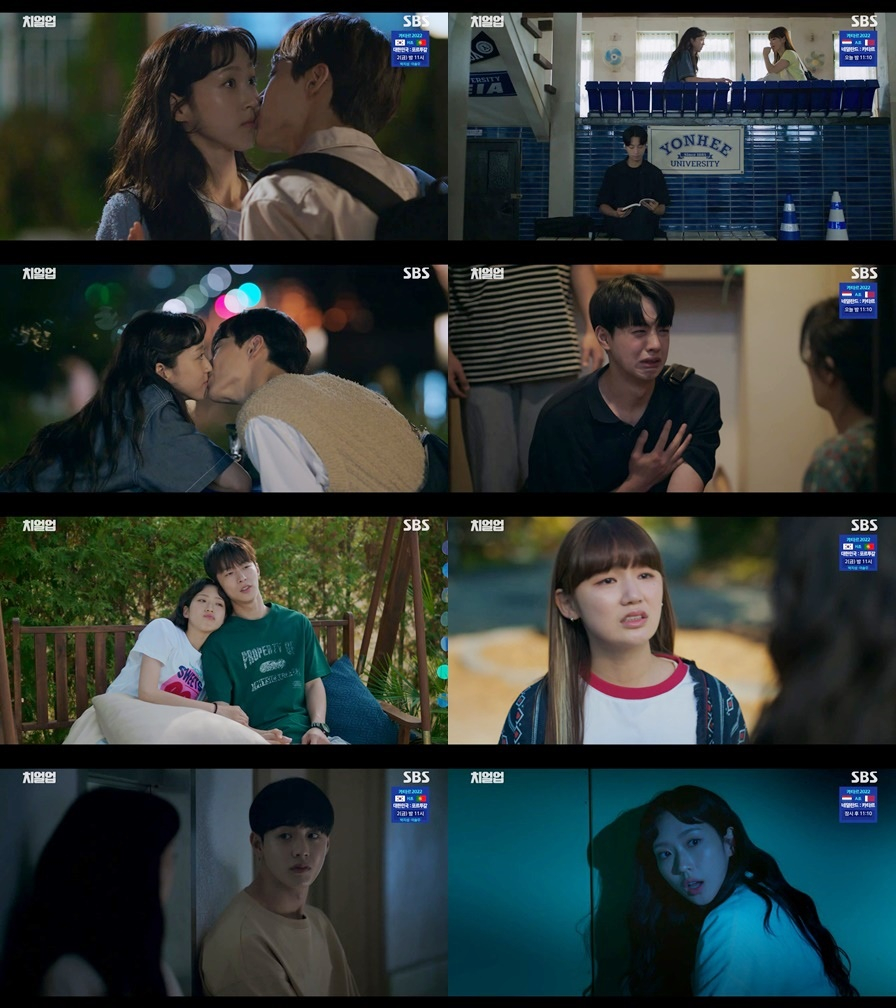 그런 가운데 도해이가 달콤한 열애 기쁨도 잠시 '테이아' 3대 예언의 사고 조작 범인 김진일(임지호 분)에게 목숨을 위협받으며 긴장감을 높였다. 응원단 '테이아'는 방학과 동시에 여름 훈련을 시작했고 김진일이 이유민(박보연 분)을 대신해 기획 총괄을 담당한 것. 김진일은 도해이의 곁을 맴돌며 일거수일투족을 예의주시하더니 도해이의 뒷모습을 지켜보며 "네가 더 최악이지"라며 속마음을 드러내 불안감을 안겼다.