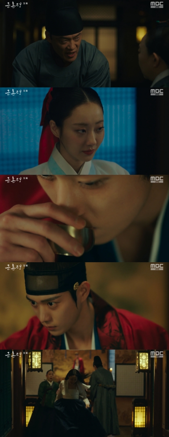 9일 오후 방송된 MBC 금토드라마 '금혼령, 조선 혼인 금지령'에서 세장(이현걸 분)은 세자빈 안 씨(김민주 분)의 죽음으로 여자에 관심이 없는 이헌(김영대 분)을 위해 남자를 홀리는데 뛰어난 기생 초란(경리 분)을 궁녀로 변장시켰다.