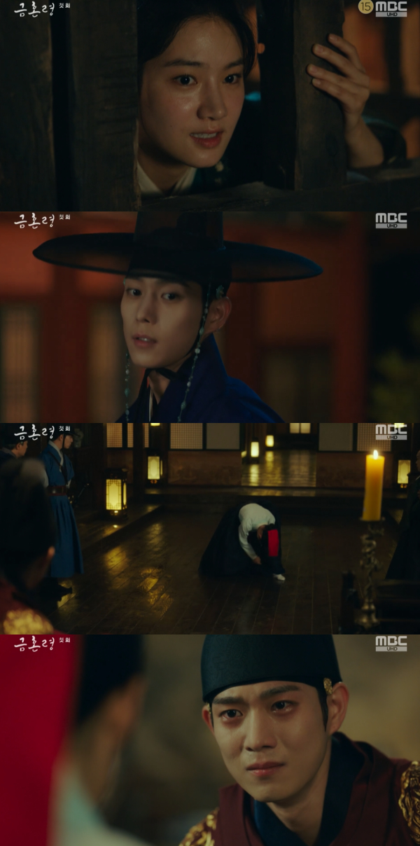 9일 오후 방송된 MBC 금토드라마 '금혼령, 조선 혼인 금지령'에서는 소랑(박주현 분)이 왕 이헌(김영대 분) 앞에서 살아남기 위해 발버둥 치는 장면이 담겼다.