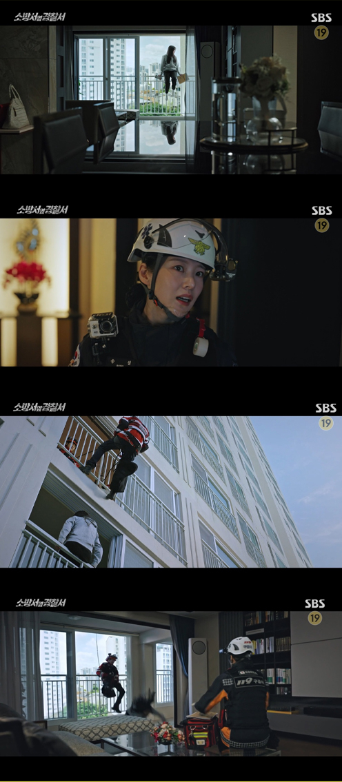 10일 방송된 SBS 금토드라마 '소방서 옆 경찰서'(이하 '소옆경')에서는 송설(공승연 분)과 봉도진(손호준 분)이 완벽한 호흡을 보이며 베란다 난간 위에 위태롭게 앉아있는 학생을 구출하는 장면이 그려졌다.