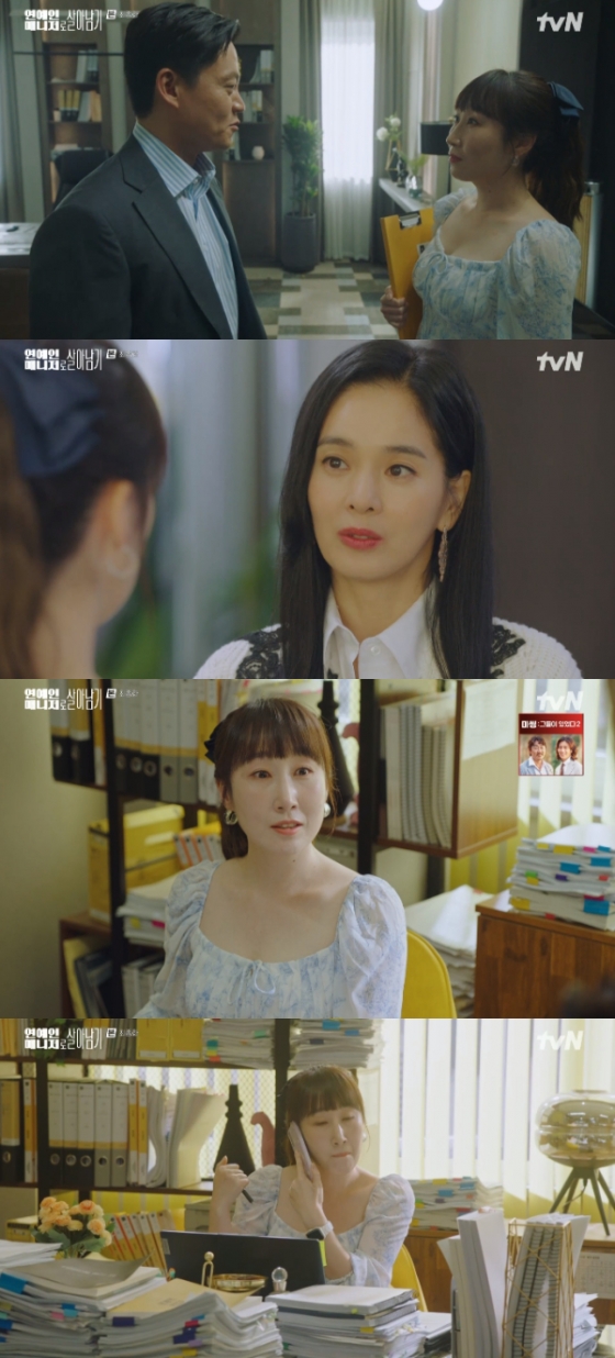 13일 오후 방송된 tvN 월화드라마 '연예인 매니저로 살아남기'에서 유은수(김국희 분)가 마태오(이서진 분)의 아내 송은하(정혜영 분)를 보고 깜짝 놀랐다.