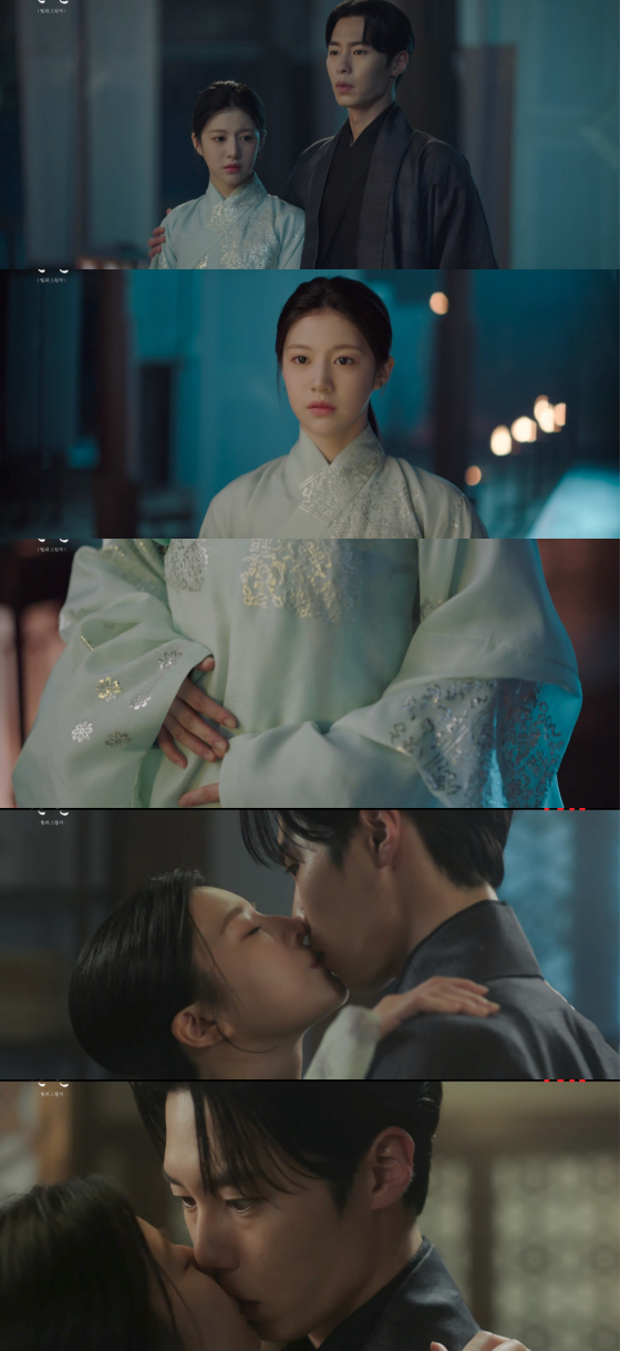 앞서 만장회에 쳐들어온 장욱은 진부연(고윤정 분)과 혼인했다는 폭탄 선언으로 만인을 놀라게 했다. 하지만 진호경(박은혜 분)은 "거짓말이다. 이 말도 안 되는 상황을 두고만 보실 거냐"며 결혼을 반대했다. 진무(조재윤 분)가 이에 증인을 요구하자 진부연은 "바로 여기에 있다"며 뱃 속을 가리켜 현장을 충격에 빠뜨렸다.
