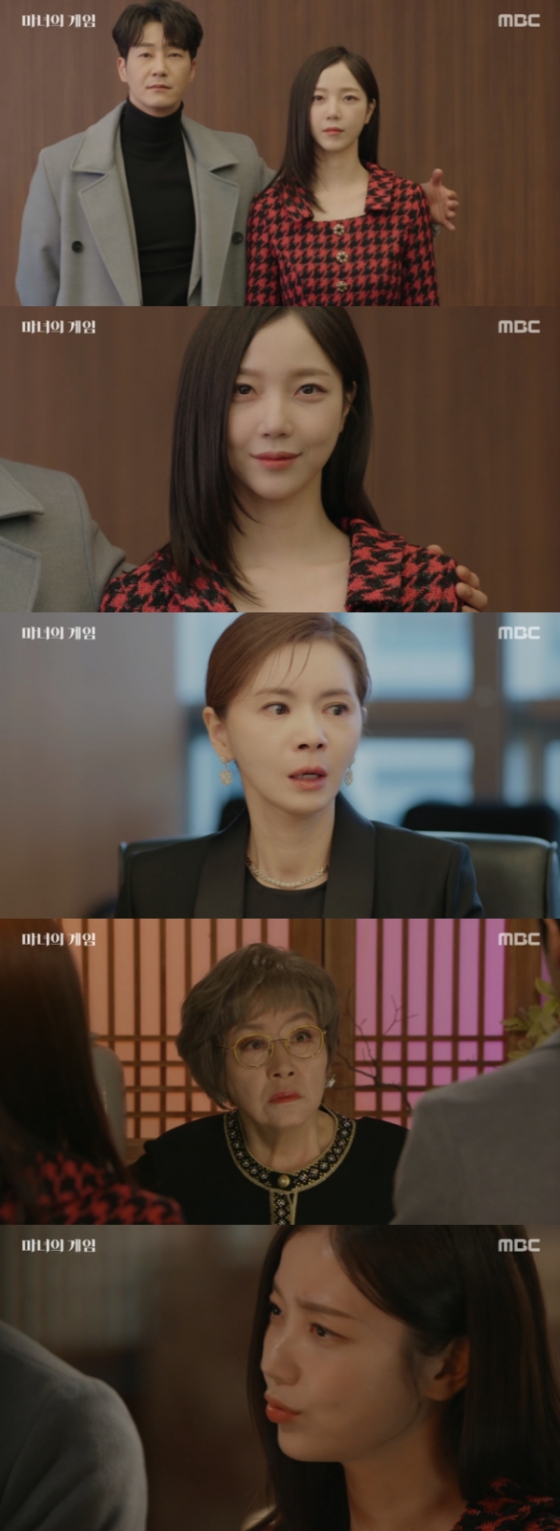 19일 오후 방송된 MBC 일일드라마 '마녀의 게임'에서 3년 동안 뉴욕에서 유학을 마친 유인하(이현석 분)가 마현덕(반효정 분), 설유경(장서희 분), 주세영(한지완 분)이 모인 자리에서 정혜수(김규선 분)을 소개했다.