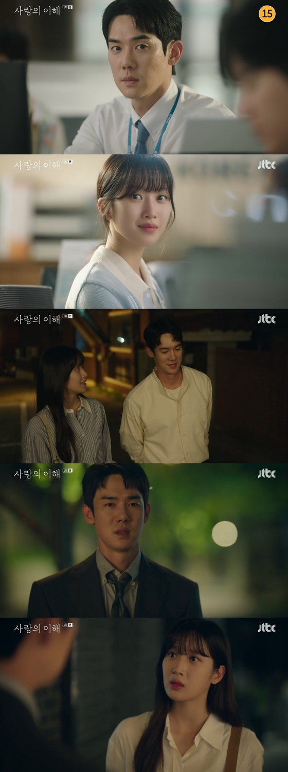 드라마 '사랑의 이해' 첫 방송에서 유연석과 문가영이 현실적인 사랑의 줄타기를 시작했다.