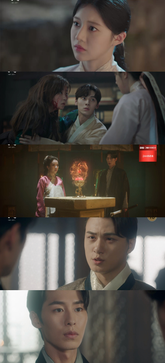 서율(황민현 분)은 자신의 목숨을 구하기 위해 진요원에 붙잡힌 소이(서혜원 분)를 구해냈다. 겨우 몸을 회복한 소이는 서율에 진부연 몸 안에 낙수가 살아있다는 사실을 폭로해 충격을 안겼다. 그 사이 장욱은 진호경(박은혜 분) 손에 있던 화조를 확인했다. 장욱은 이어 이선생(임철수 분)에 화조를 노리는 세력이 있다는 사실까지 전했다.