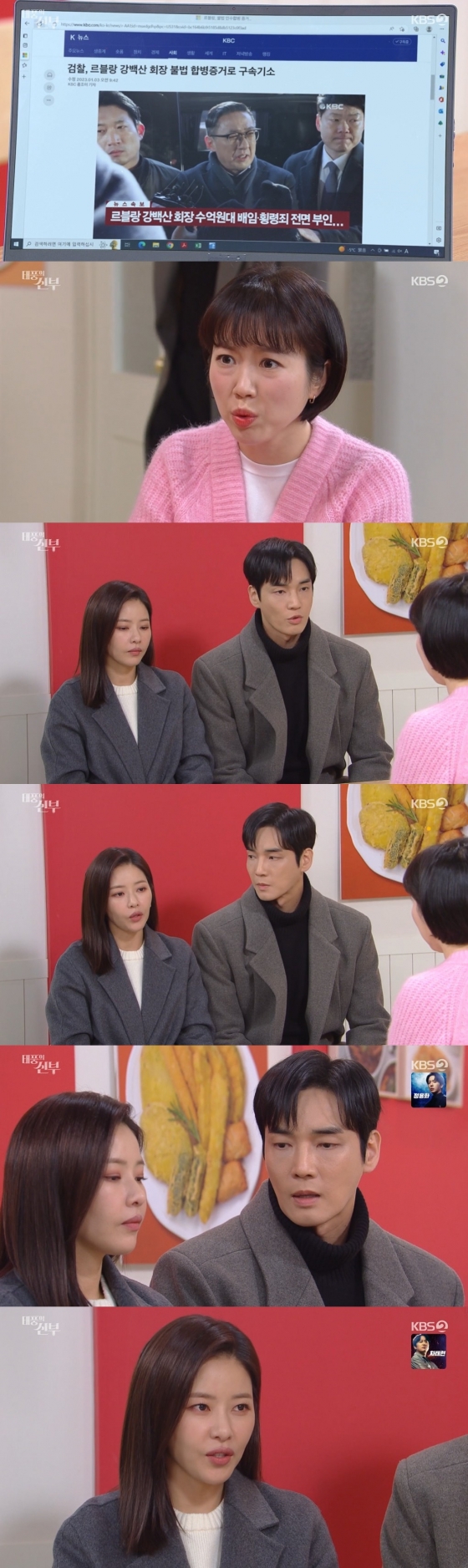 3일 오후 방송된 KBS 2TV 일일드라마 '태풍의 신부'에서는 은서연(박하나 분)이 배순영(최영완 분)과 친구 양달희(이시영 분)와 함께 르블랑 회장 강백산(손창민 분)이 구속된 기사를 확인하는 모습이 담겼다.