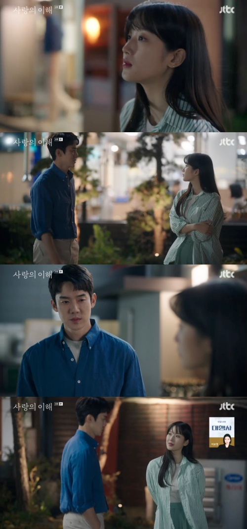 12일 오후 방송된 JTBC 수목드라마 '사랑의 이해'에서 정종현(정가람 분)과 동거 중인 안수영(문가영 분)이 정종현을 속였다.