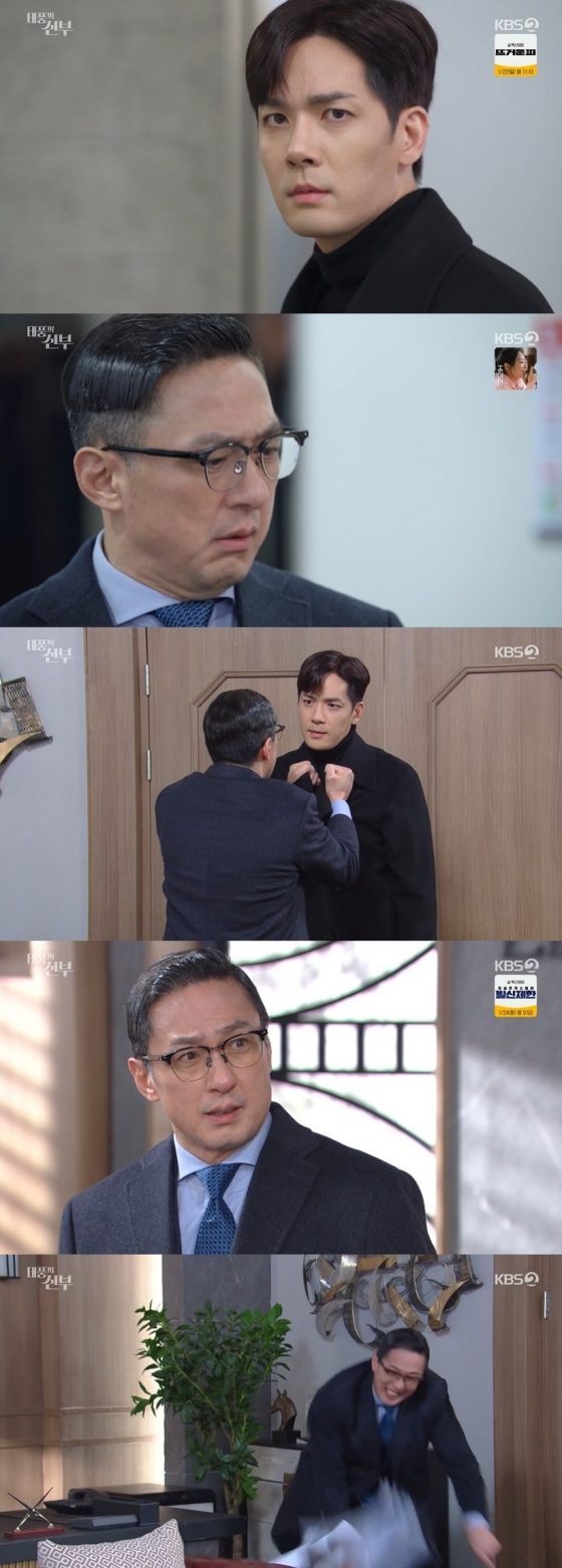 20일 오후 방송된 KBS 2TV 일일드라마 '태풍의 신부'에서는 죽은 사람으로 둔갑했던 윤산들(박윤재 분)이 르블랑 회장 강백산(손창민 분) 앞에 나타난 장면이 담겼다.