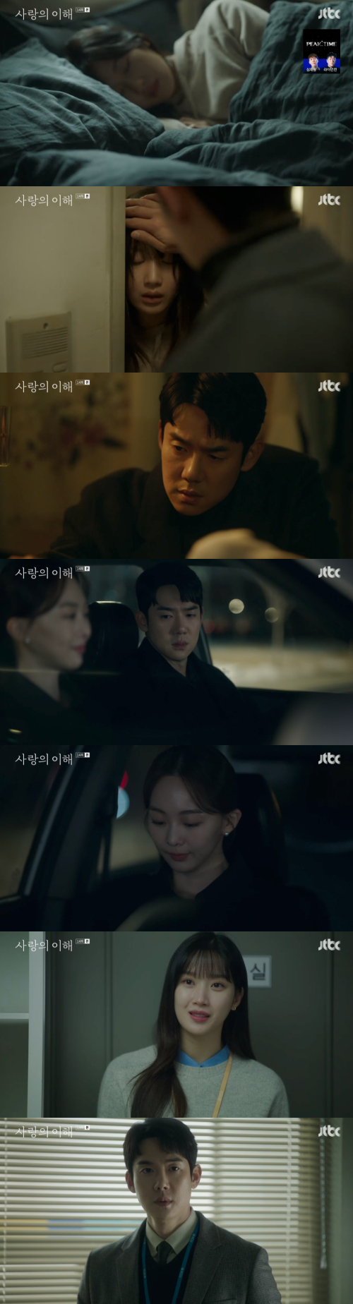 2일 방송된 JTBC 수목드라마 '사랑의 이해'에서는 하상수(유연석 분)이 사직서를 쓰고 사라진 안수영(문가영 분)을 찾는 모습이 그려졌다.