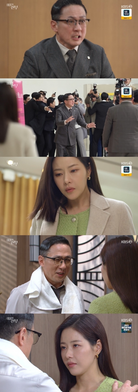 7일 오후 방송된 KBS 2TV 일일드라마 '태풍의 신부'에서는 S그룹 정모연(지수원 분) 대표 납치 사건으로 르블랑 회장 강백산(손창민 분)이 대표이사 해임안에 오르는 모습이 담겼다.