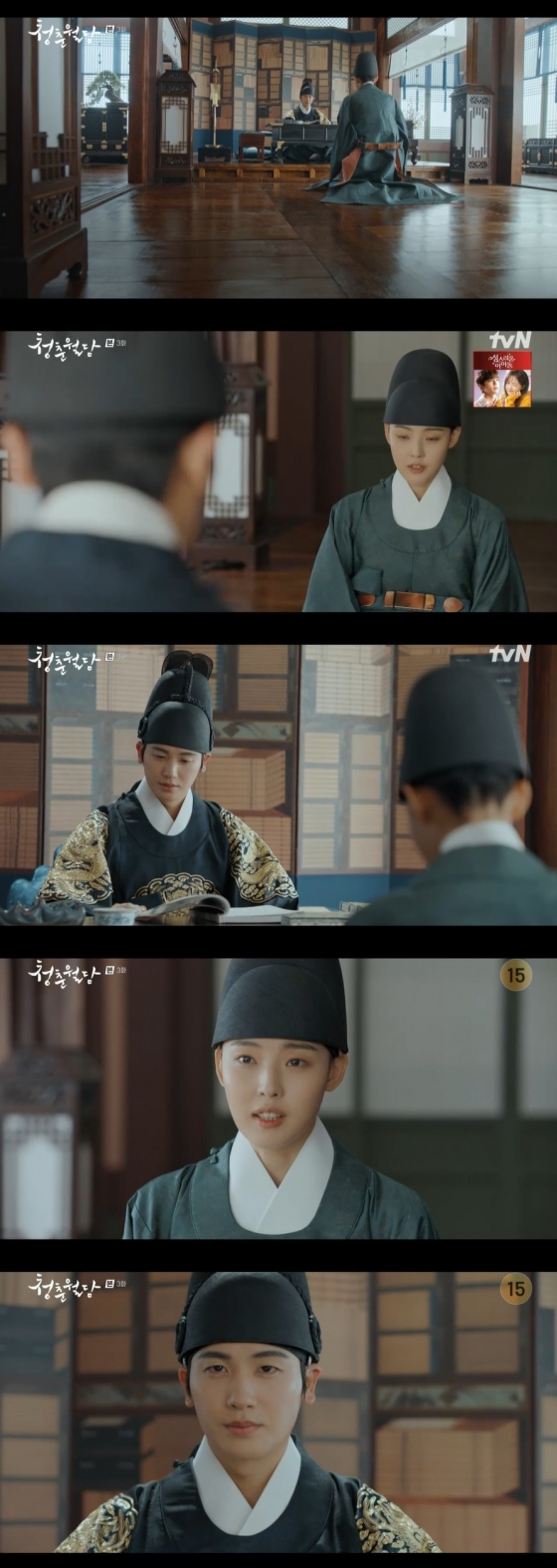 13일 오후 방송된 tvN 월화드라마 '청춘월담'에서는 내관으로 위장 한 민재이(전소니 분)가 세자 이환(박형식 분)에게 억울함을 호소하는 장면이 담겼다.