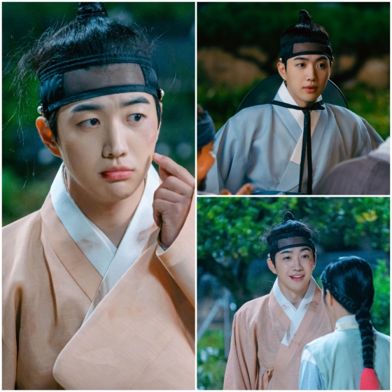 극중 김시열(강훈)이 멍투성이 얼굴에 배시시 웃음으로 능글미 만렙의 한량 꽃선비의 면모를 제대로 보여주는 대목이다. 강훈은 과거시험 보다 놀기를 좋아하는 탓에 우당탕탕 사고를 치기도 하지만 미소로 봉인 해제를 시키는 김시열 역으로 개구쟁이 모습부터 정의로운 면모까지 극과 극 매력을 드러낸다.