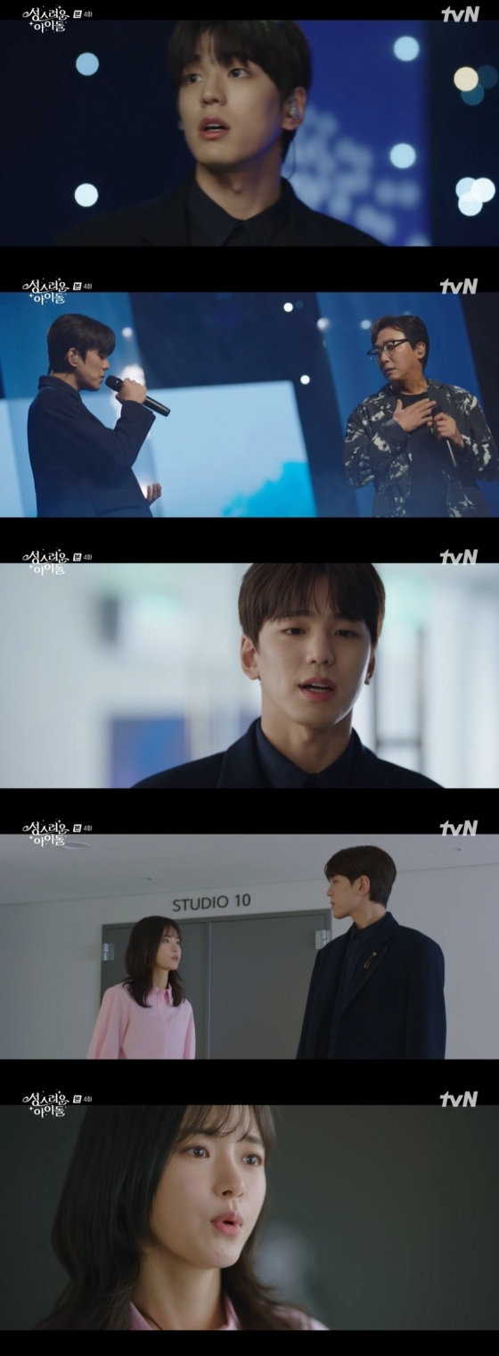 23일 오후 방송된 tvN 수목드라마 '성스러운 아이돌'에서는 우연우의 삶을 사는 램브러리(김민규 분)가 대한민국 최고 가수 선우실(탁재훈 분)과 무대에 선 장면이 담겼다.