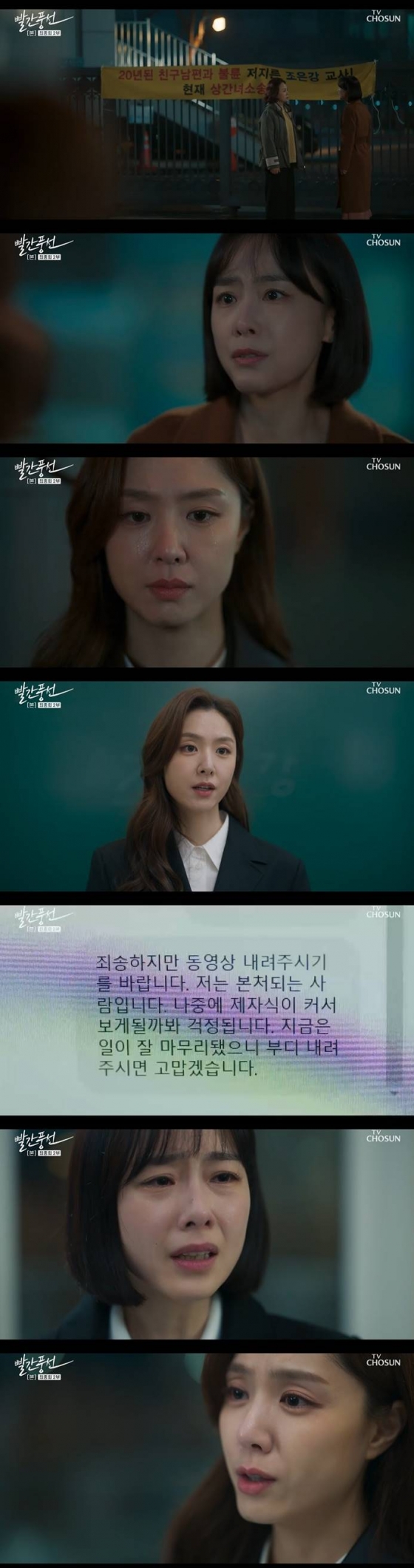 26일 방송된 TV조선 토일드라마 '빨간풍선'에서는 한바다(홍수현 분)가 자신의 남편 고차원(이상우 분)과 불륜을 저지른 절친 조은강(서지혜 분)을 용서했다.