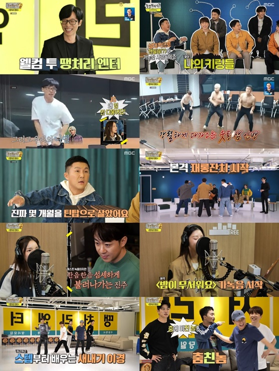 지난 4일 방송된 MBC 예능 '놀면 뭐하니?'에서는 유재석이 연습생들을 불러모아 땡처리 엔터를 설립하는 모습이 그려졌다. 미완성의 틴탑 'To You(투유)' 댄스를 마무리할 8인조 보이그룹 연습생들과 '밤이 무서워요' 여성 듀엣곡을 준비하는 연습생들의 첫 대면식이 시선을 끌었다.