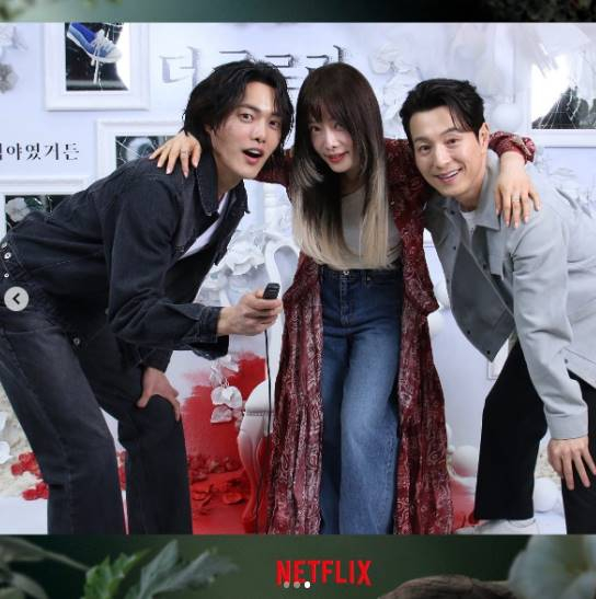 이들은 정성일과 같이 '더 글로리' 배우들과 모여 화기애애한 사진을 선보였다.