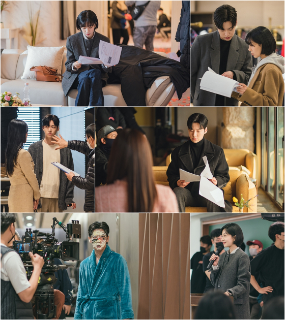 먼저 백진희는 대본에서 눈을 떼지 못한 채 완벽한 컷을 만들기 위해 열중하는 명품 배우의 모습을 보여주고 있다. 상대 배우인 안재현과 연기 호흡을 맞춰 보는 모습도 포착, 이들이 선보일 연기 케미에도 관심이 모아진다.