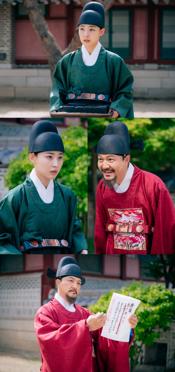 이런 가운데 공개된 사진 속에는 민재이가 궁궐 안에서 조원보와 단둘이 이야기를 나누는 모습이 담겨 호기심을 자극한다. 특히 민재이의 얼굴에는 긴장한 기색이 역력한 데 비해 조원보는 만면에 웃음을 띠고 있어 불안감을 자아낸다.
