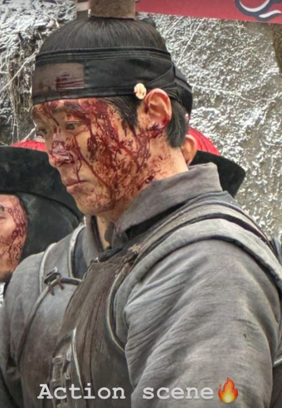 사진 속 남궁민은 액션씬을 찍던 중, 얼굴에 피를 철철 흘리고 있는 모습이다.