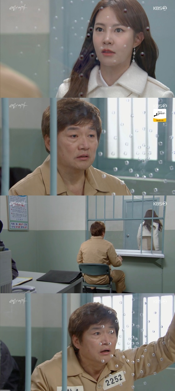 3일 오후 방송된 KBS 2TV 일일드라마 '비밀의 여자'에서 오세린(최윤영 분)이 구치소에 수감된 정겨울(신고은 분)의 아빠 정현태(최재성 분)를 찾아갔다.